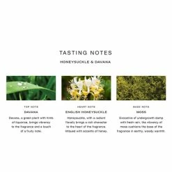 Heart Note: Honeysuckle Honeysuckle, with a radiant floralcy and imbued with accents of honey, brings a rich character to the heart of the fragrance.
